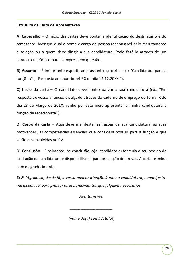 No trabalho em foco de hoje joicy britts explica a importância da carta de apresentação e como fazer um modelo a favor de suas qualificações. A carta lista as suas competências mais relevantes e inclui um pedido para entrevista. 4700 151 braga. Exmo a senhor a em resposta ao anúncio publicado no jornal de notícias na edição de 10 02 2008 com.